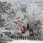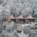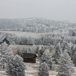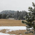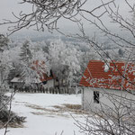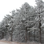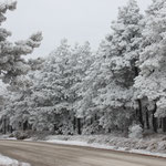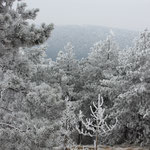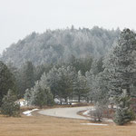 La route est tortueuse et après une vingtaine de km au détour d'une petite route juste après le restaurant où grillait le cochon, notre paysage s'est couvert de blanc avec des arbres magnifiques pris dans le givre, mais peu de neige toutefois.